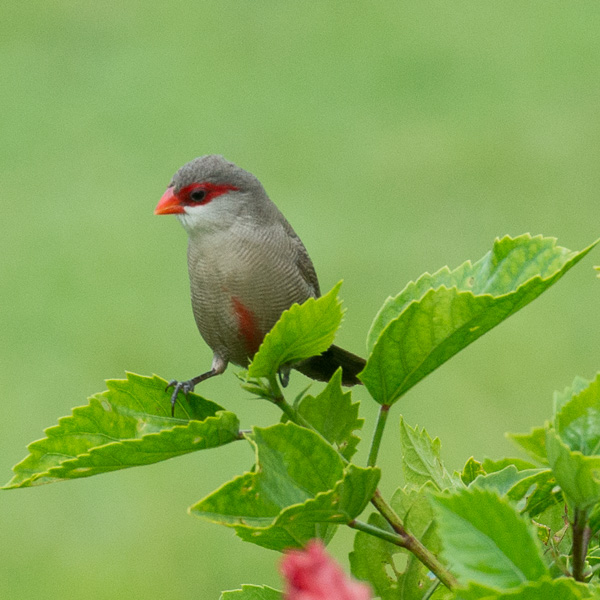 The diet consists mainly of grass seeds but insects are also eaten on occasions, especially during the breeding season when more protein is needed. The waxbills typically forage in flocks which may contain hundreds or even thousands of birds. They usually feed by clinging to the stems with their long, spindly claws and picking from the flower heads but they will also search for fallen seeds on the ground. They need to drink regularly as the seeds contain little water.